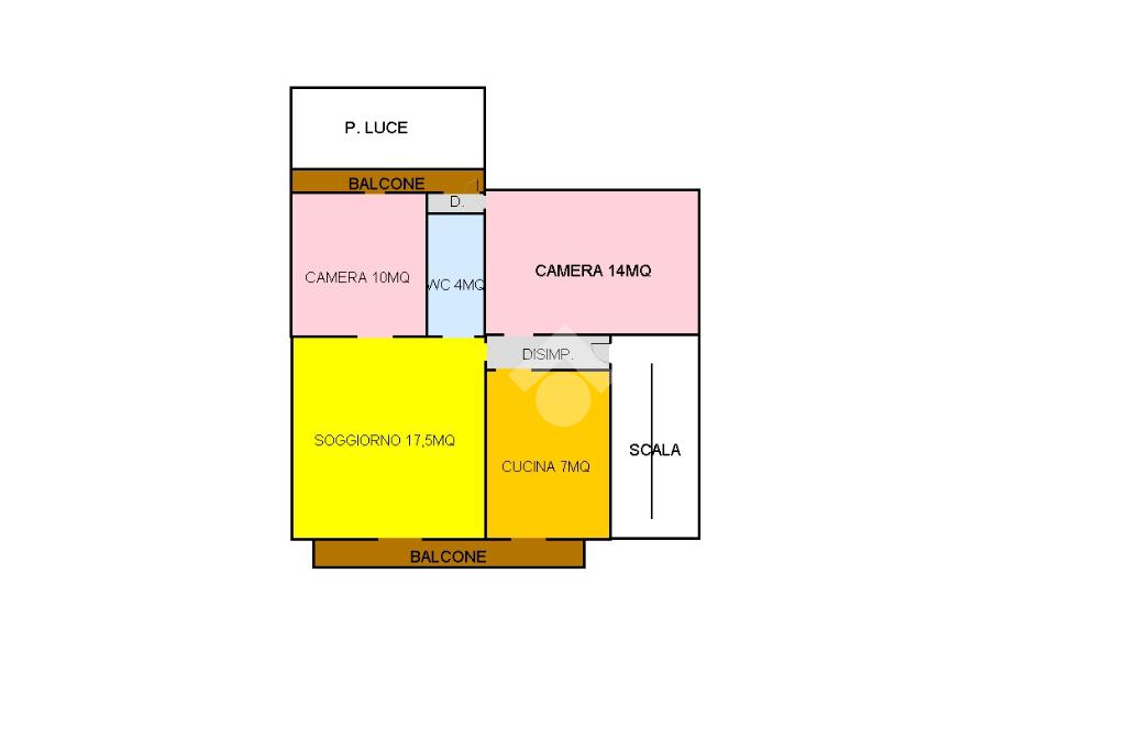 La casa si compone da un ampio e luminoso soggiorno e una comoda cucina; entrambi gli ambienti hanno un affaccio a dei balconi. Proseguendo c'è una camera da letto matrimoniale, una camera singola con affaccio ad un altro balcone e un bagno con vasca/doccia.