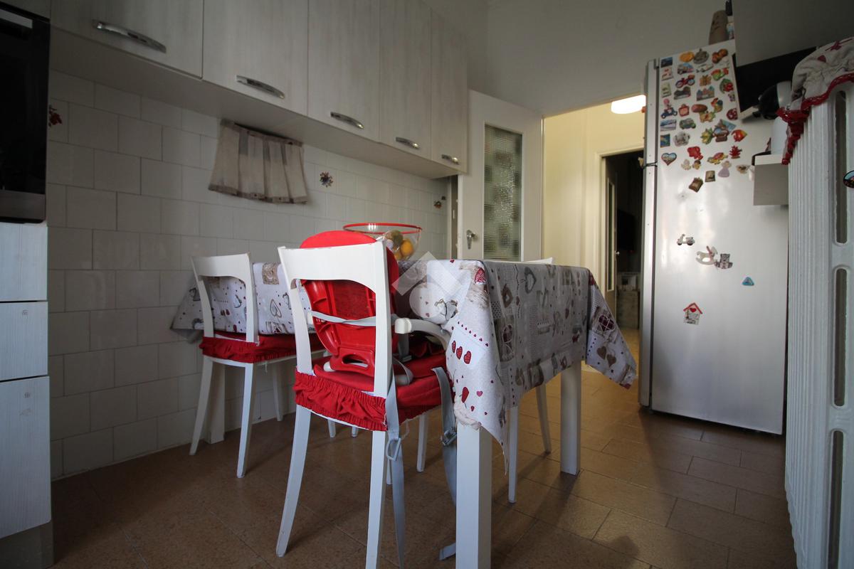 L'immobile è in buone condizioni generali, presente impianto di riscaldamento termoautonomo a gasolio, infissi doppi in anticorodal e pavimentazione in marmo agglomerato mentre in cucina in gres porcellanato. Valore aggiuntivo il prospetto rifatto recentemente.