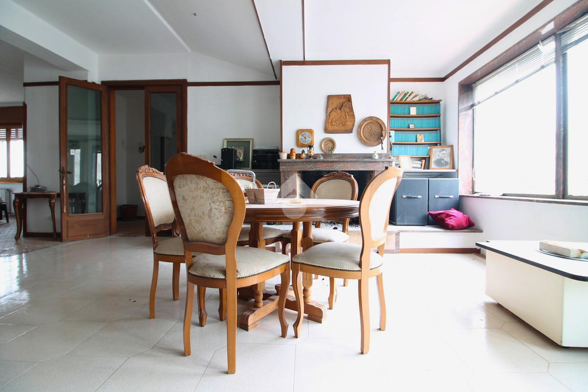 L’abitazione si apre su un luminoso e spazioso soggiorno con camino, una sala pranzo seguita da una cucina abitabile. La zona notte comprende quattro camere da letto, due delle quali dotate di bagno privato, oltre ad altri due bagni di servizio, garantendo massima comodità per nuclei familiari numerosi o per futuri frazionamenti.