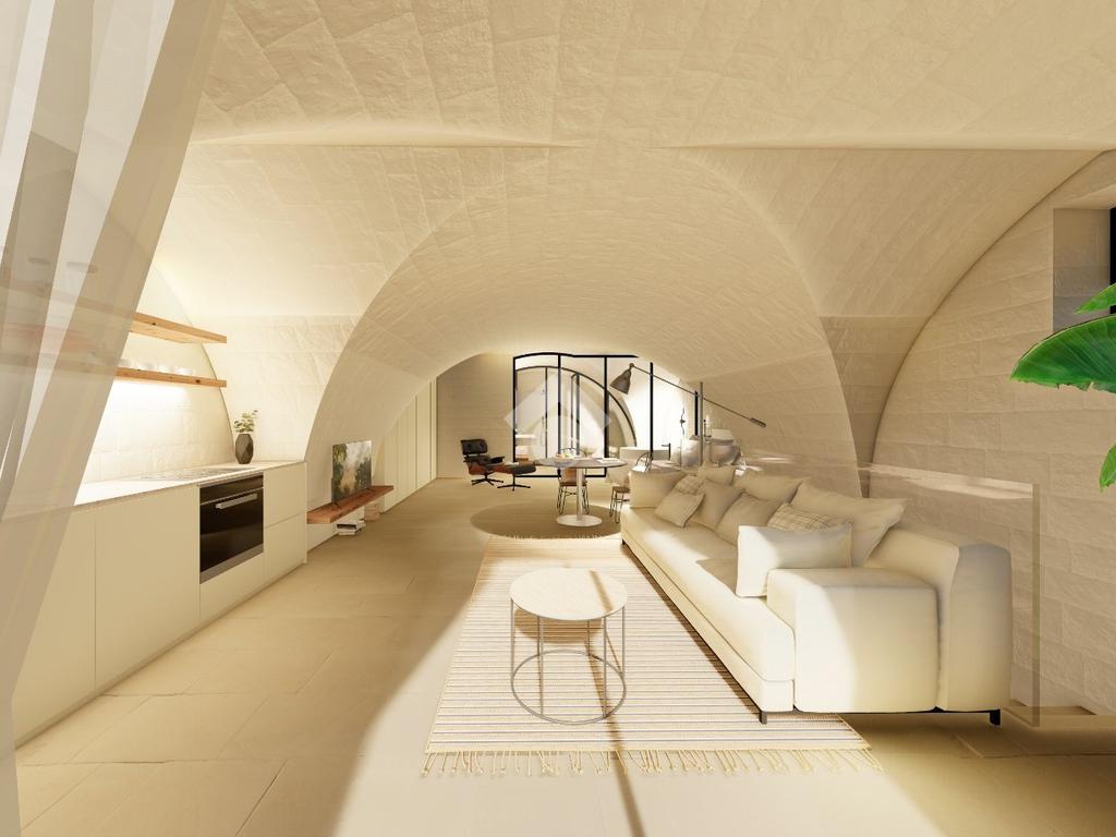 È presente un unico ambiente finestrato, caratterizzato dalla presenza di alte volte con pietra a vista, anti bagno e bagno.