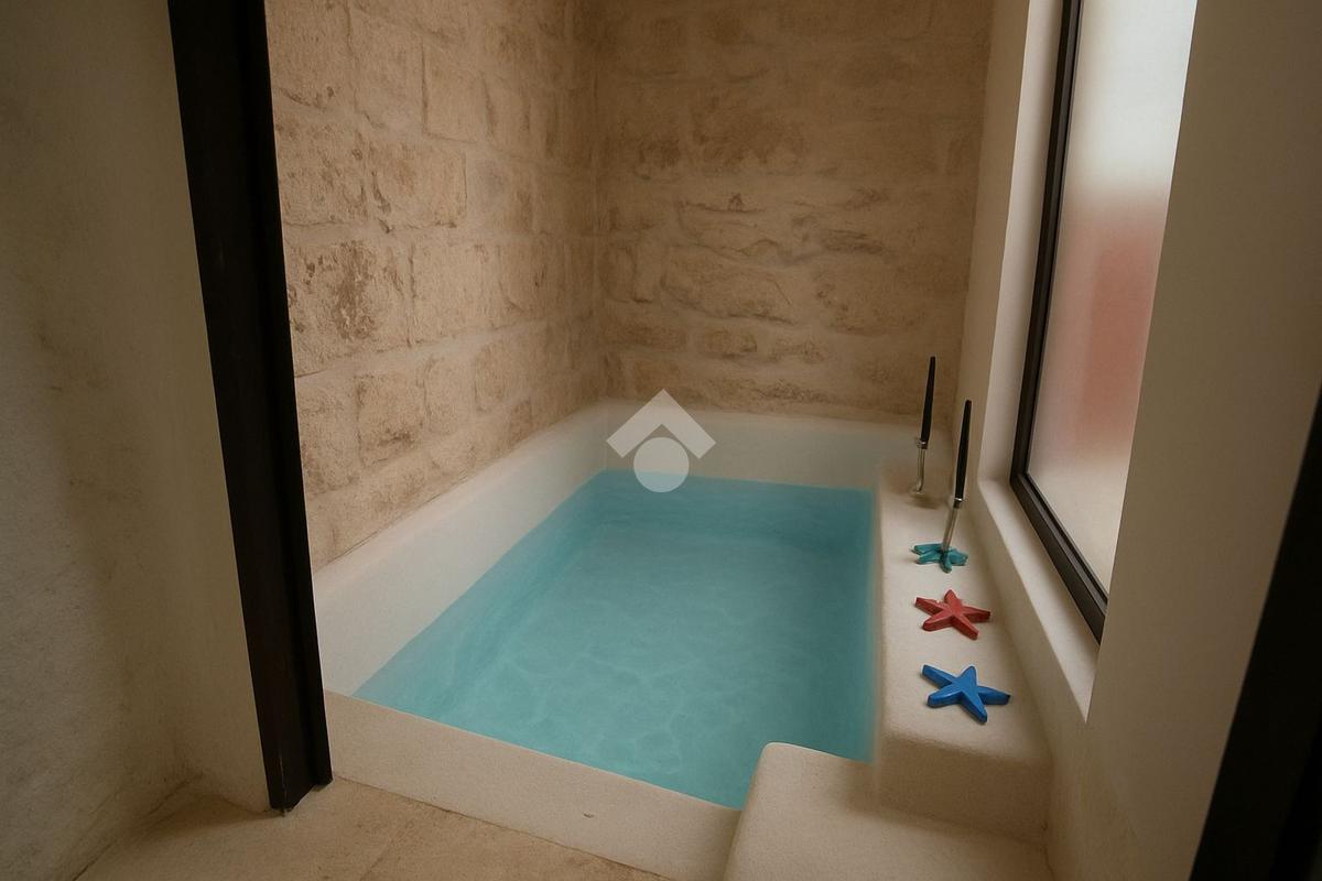Il vero colpo di scena si apre davanti agli occhi attraverso una porta in ferro battuto e vetro satinato: una bellissima piscina privata, rifinita con gusto e attenzione ai dettagli, perfetta per rilassarsi in totale privacy, anche nelle giornate più calde.