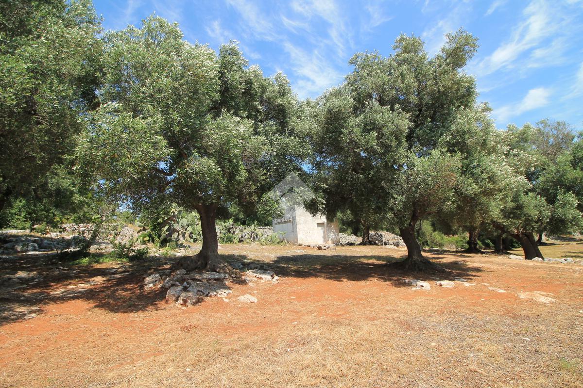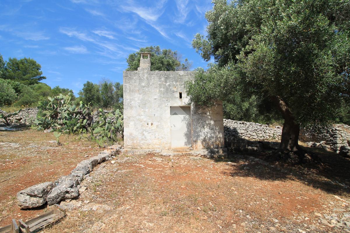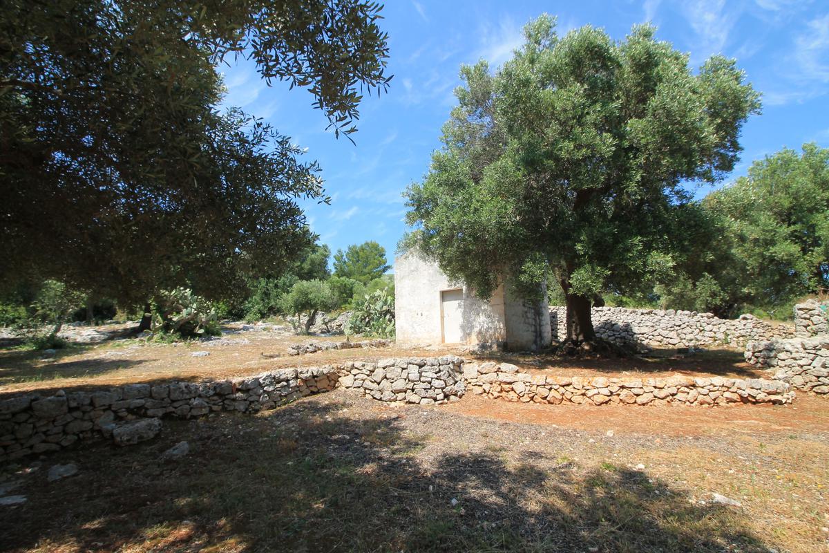 È già presente sul terreno una piccola lamia in pietra, utilizzata come deposito, che contribuisce al fascino tipico delle proprietà rurali pugliesi.
