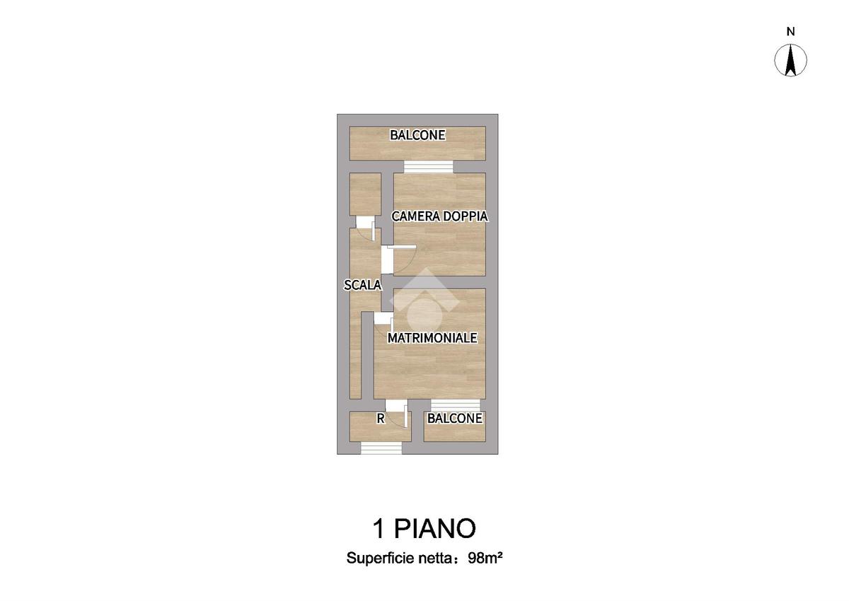Salendo al secondo piano, un disimpegno conduce alla camera da letto matrimoniale, completa di cabina armadio finestrata e con affaccio su balcone; segue una camera doppia, anch’essa con affaccio su un secondo balcone, e un bagno dotato di tutti i servizi e vasca.