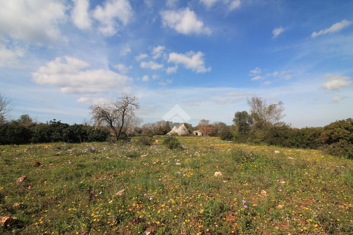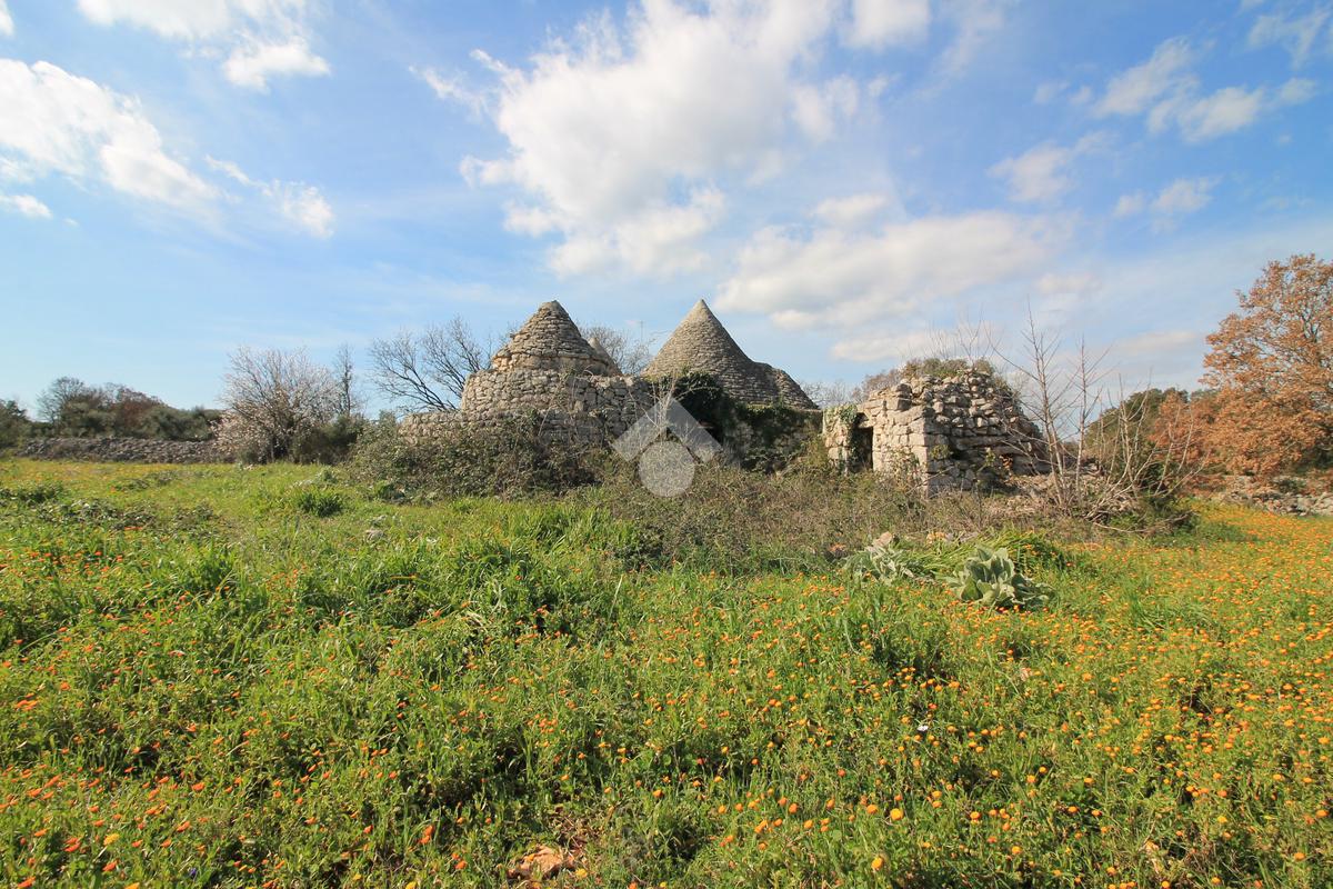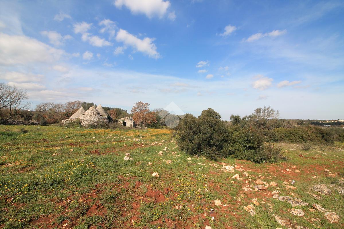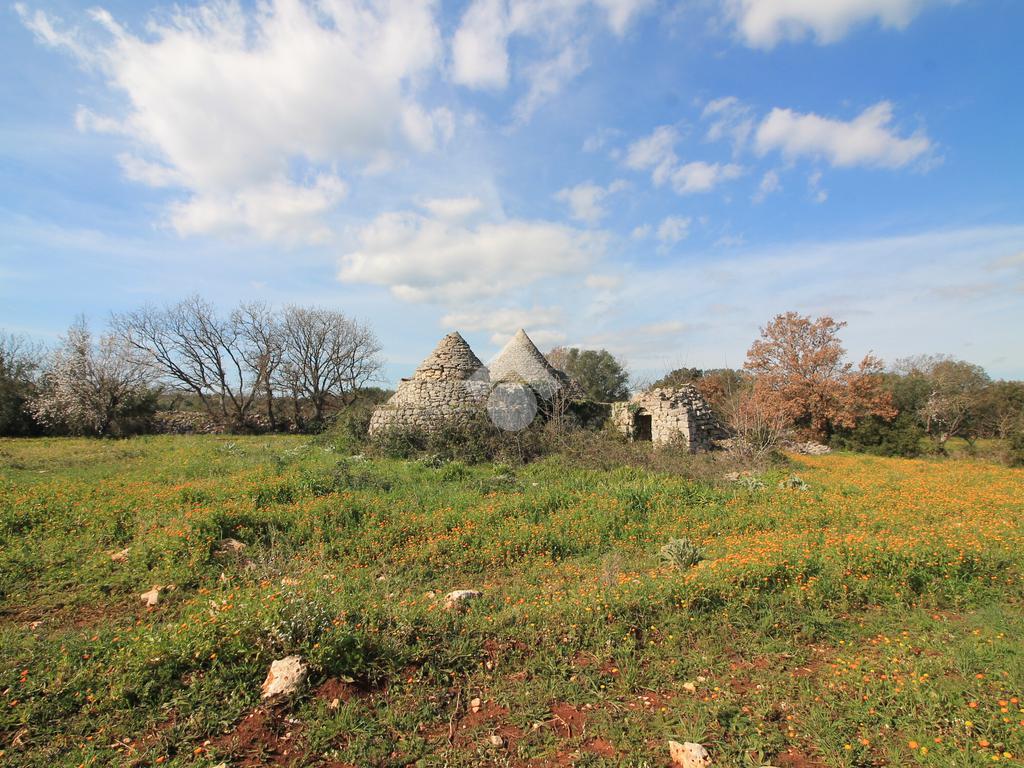 INCANTEVOLE TERRENO EDIFICABILE CON GRUPPO DI TRULLI A 5 CONI, IMMERSO NELLA QUIETE DELLA CAMPAGNA.