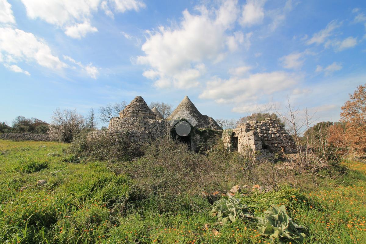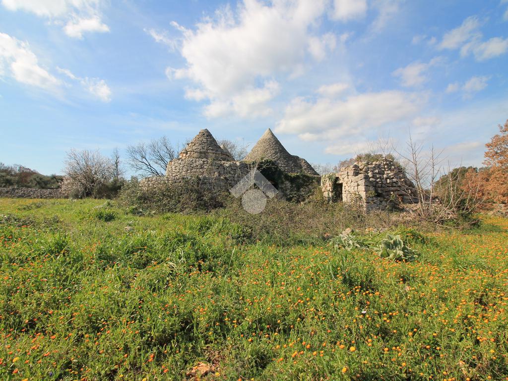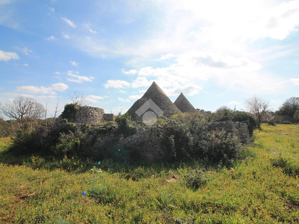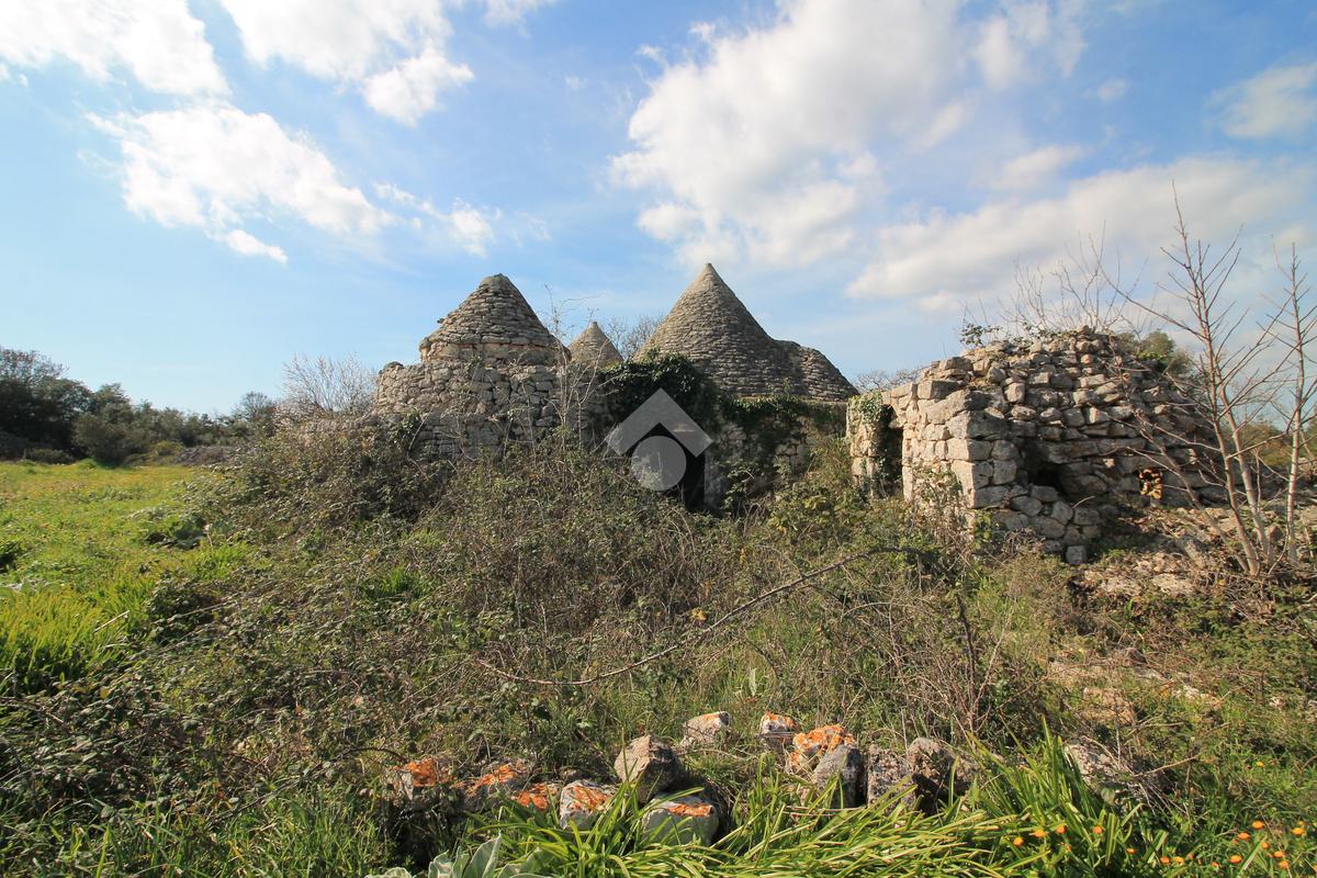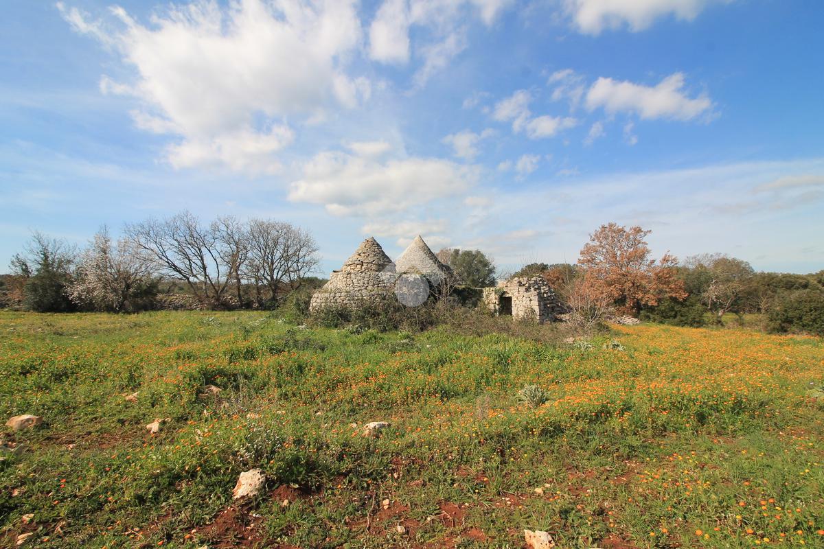 INCANTEVOLE TERRENO EDIFICABILE CON GRUPPO DI TRULLI A 5 CONI, IMMERSO NELLA QUIETE DELLA CAMPAGNA.
