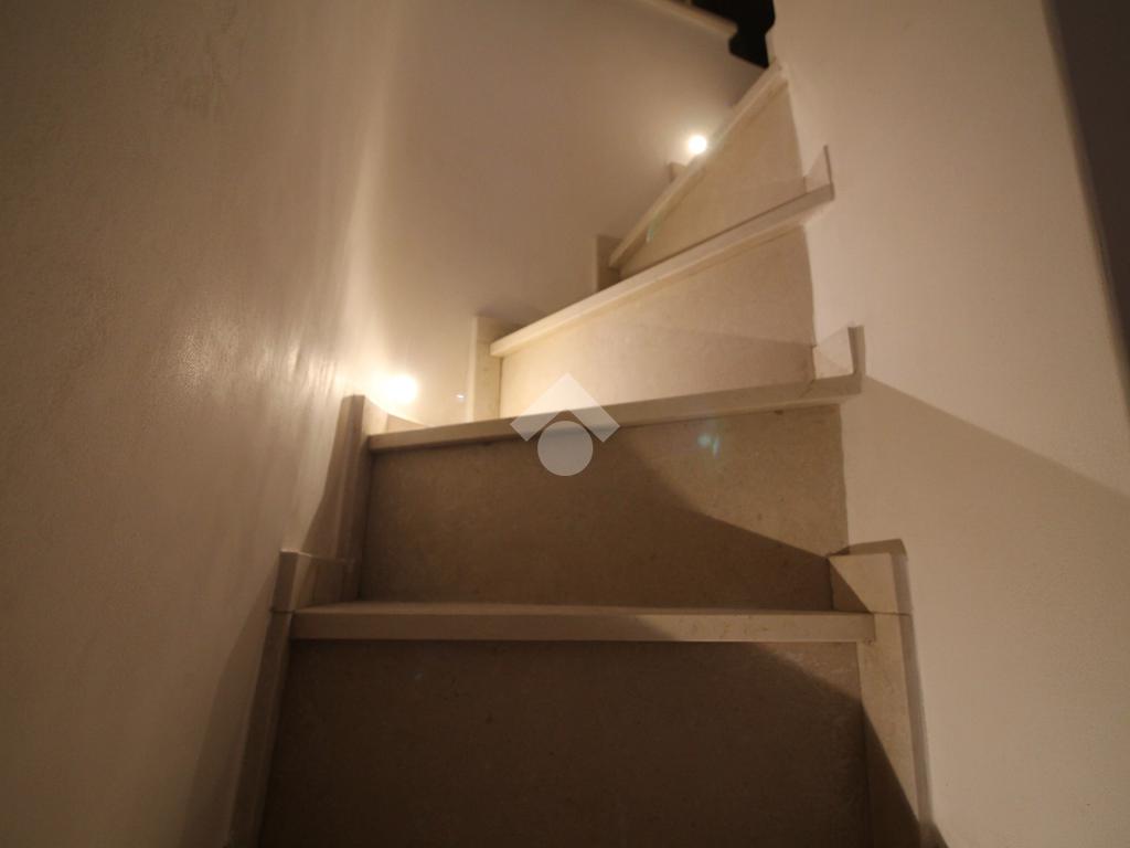 Salendo pochi gradini si raggiunge un soppalco ammezzato, ideale come zona relax, studio o spazio multifunzionale. Tutti gli ambienti sono caratterizzati dalla pietra a vista.