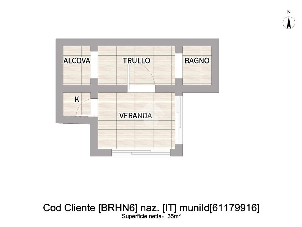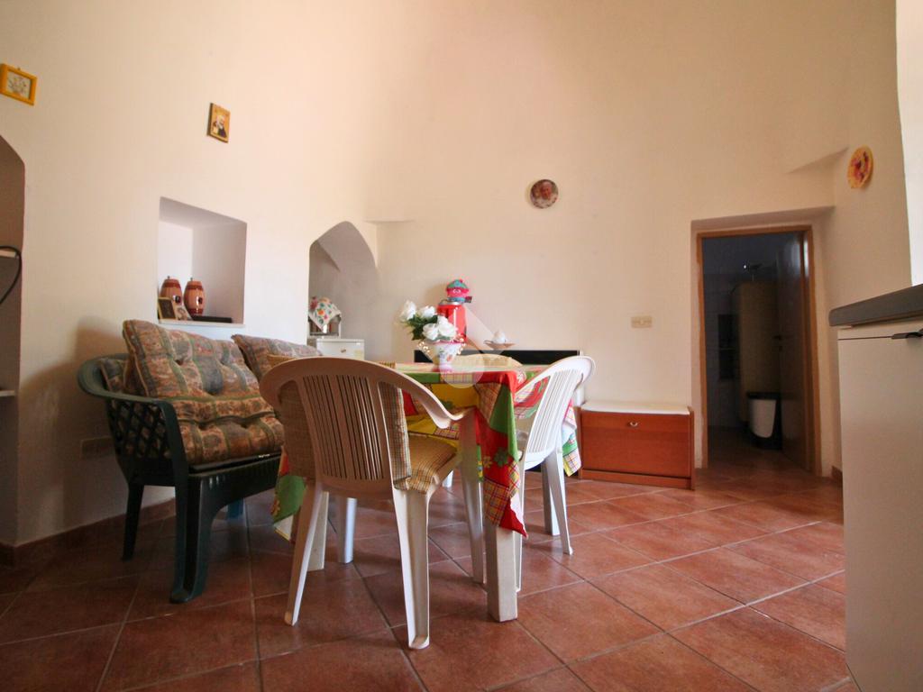 Un suggestivo viale d’accesso accompagna alla veranda in legno, uno spazio accogliente che diventa una vera e propria sala da pranzo all’aperto, perfetta per cene estive sotto le stelle e momenti di relax immersi nella natura e un funzionale cucinino. All’interno, il trullo si presenta in condizioni abitabili e conserva il suo fascino originario. Troviamo una sala principale calda e raccolta con due caratteristiche alcove: una pensata per accogliere un letto matrimoniale, creando un intimo angolo notte, e l’altra adibita a bagno completo con box doccia.