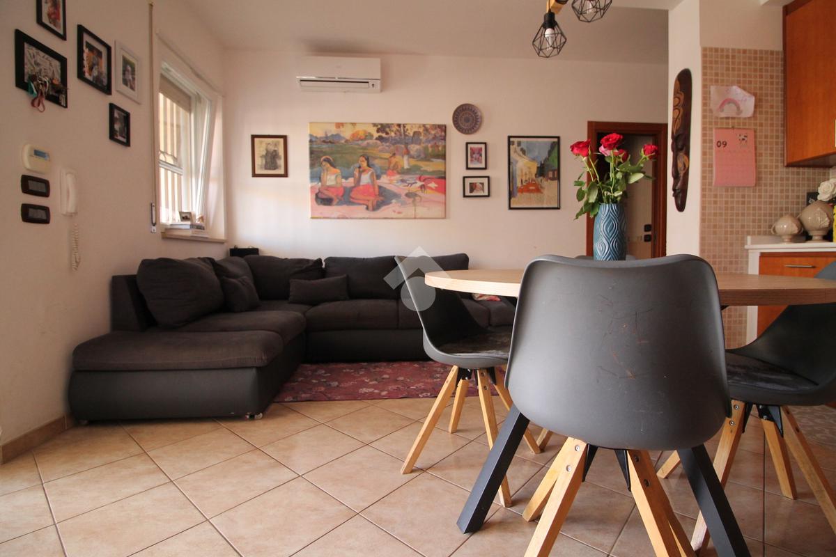 All'interno lo spazio si apre su un luminoso soggiorno con angolo cottura, cuore della casa, da cui si accede alla zona notte composta da due camere da letto di generose dimensioni, entrambe con affaccio su un balcone che dona luce naturale durante tutto il giorno. Un bagno finestrato con antibagno e box doccia completa la distribuzione interna.