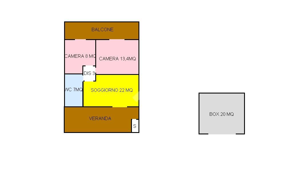 La proprietà è arricchita da un box auto di circa 20 mq, comodo e facilmente accessibile.
