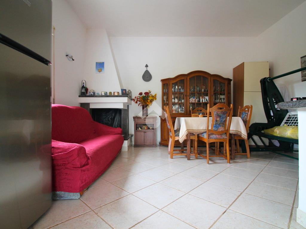 All'interno, l'abitazione accoglie con un luminoso soggiorno con camino, un cucinino finestrato, due comode camere da letto, uno studio e un bagno con box doccia.