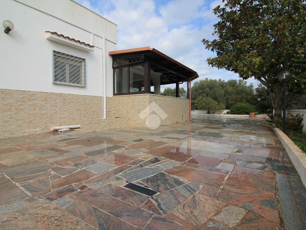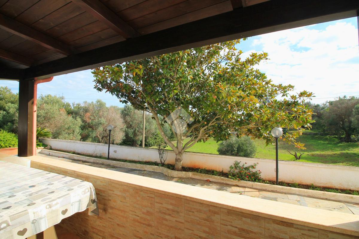 Un ampio piazzale in agglomerato di marmo conduce alla veranda panoramica, perfetta per pranzi e cene all'aperto, come da tradizione pugliese.