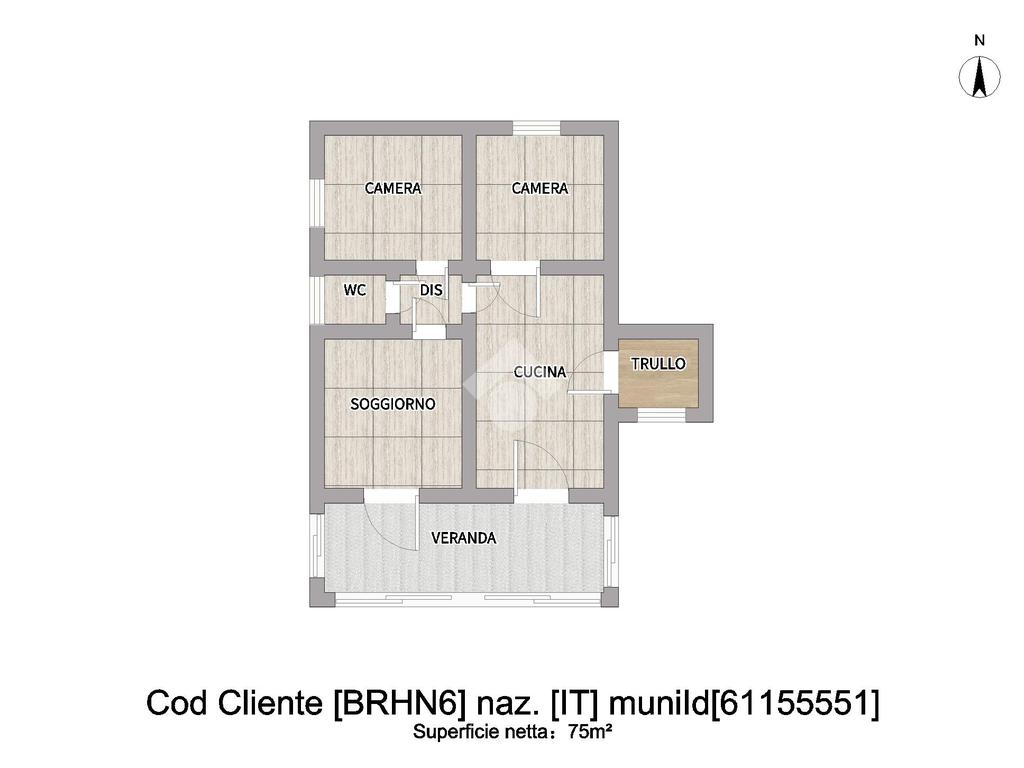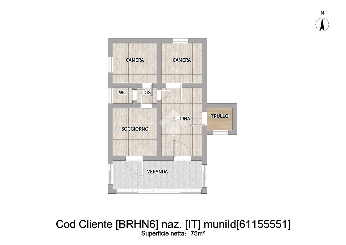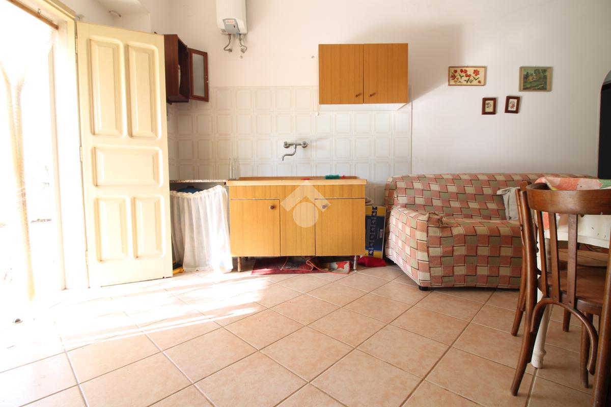 Un viale d’accesso conduce al piazzale antistante l’abitazione, che introduce alla struttura. L’ingresso è preceduto da una veranda in muratura, ideale come spazio di accoglienza. Gli interni si compongono di un soggiorno, una cucina con camino, un bagno completo di servizi e due comode camere da letto.