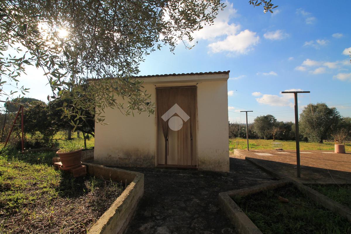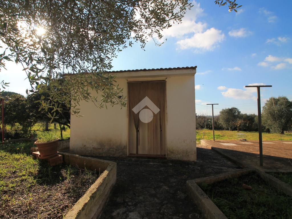La proprietà è ricordata da un terreno di circa 2.000 mq, piantumato con alcuni mandorli, pochi ulivi e piante ornamentali. Sono presenti pozzo nero e due cisterne.