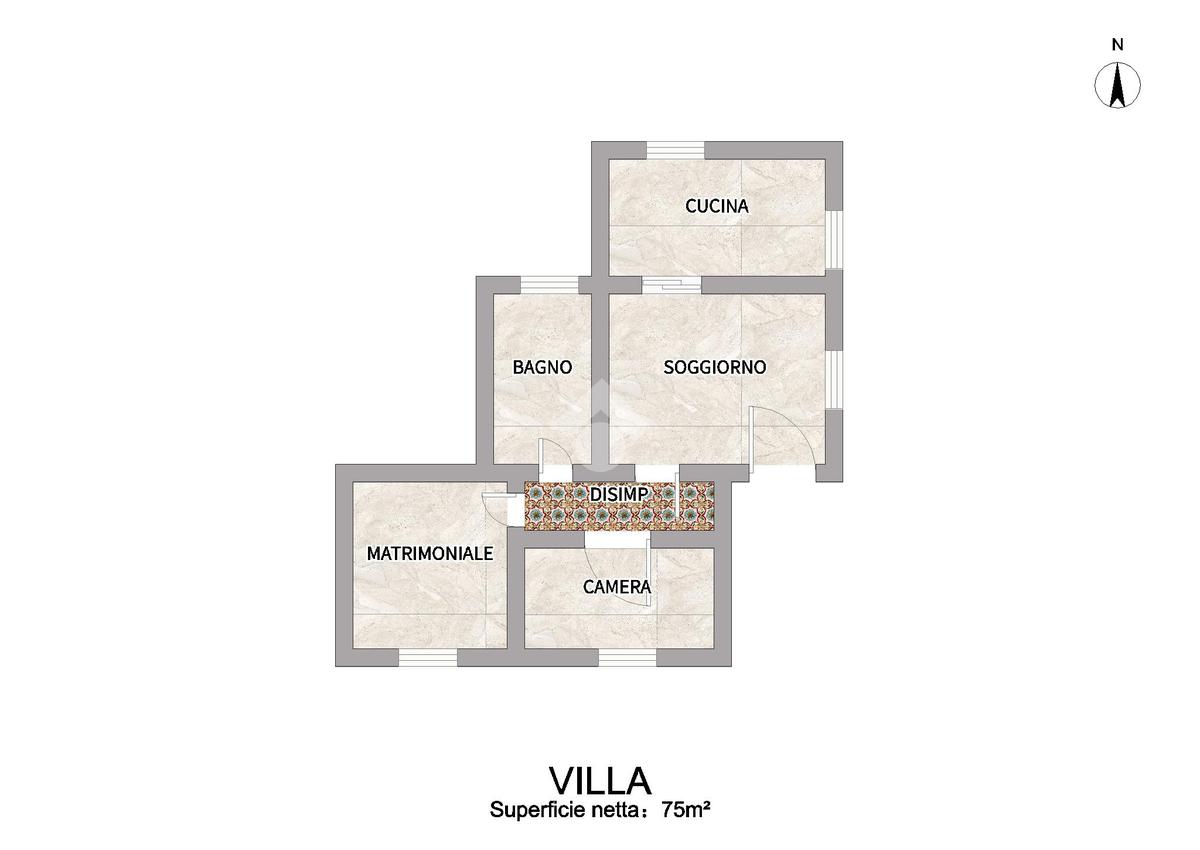 Separata dalla dependance si trova la villa principale, di recente costruzione, composta da un ampio soggiorno con camino, cucina abitabile completa di elettrodomestici, camera matrimoniale, camera/ripostiglio, e bagno con box doccia.