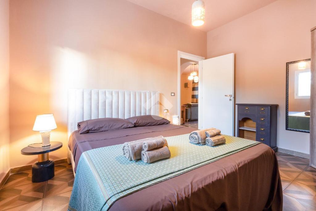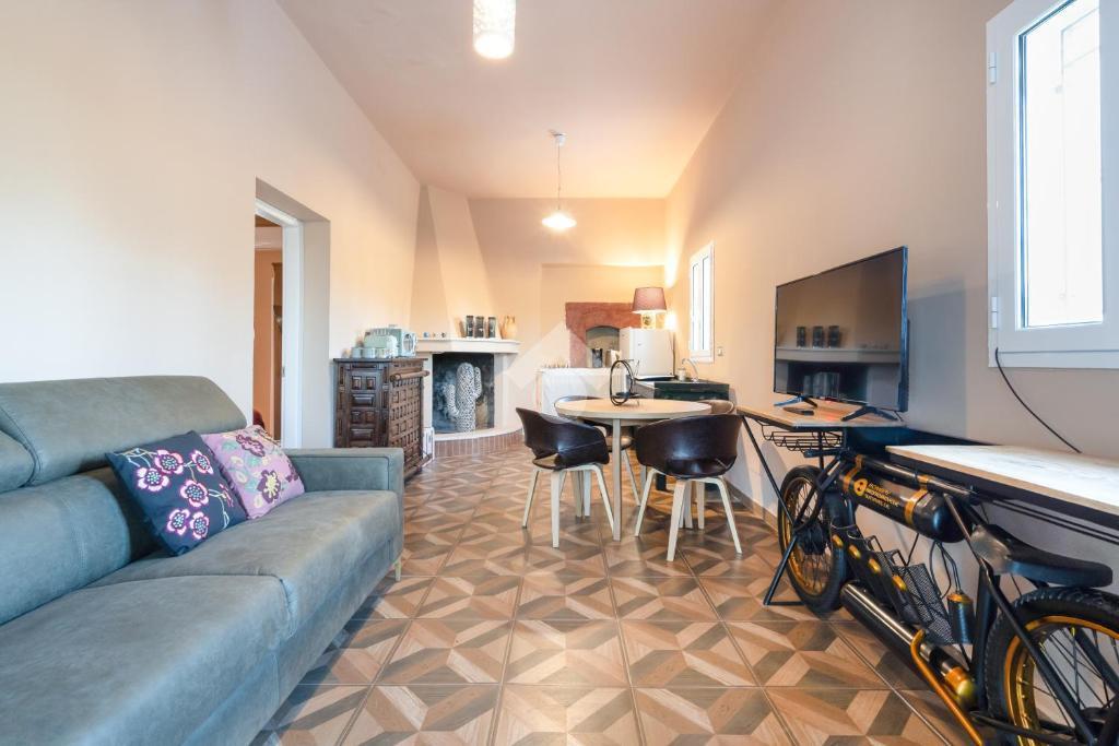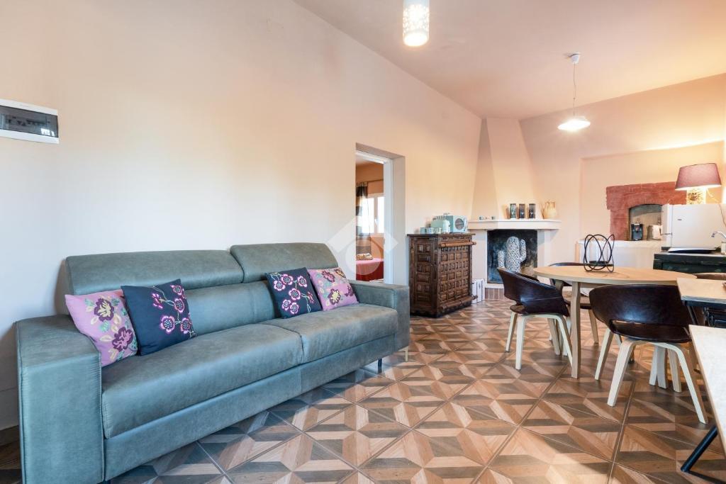 Ad anticipare l’ingresso, una veranda accogliente invita a vivere la casa all’aperto, tra cene sotto le stelle e piacevoli serate in compagnia. All’interno, la villa si apre su un luminoso soggiorno con cucina a vista, cuore della casa, seguito da una seconda zona living arricchita da camino e forno, dove il calore degli ambienti crea un’atmosfera intima e familiare. La zona notte ospita due camere matrimoniali, confortevoli e ben distribuite, di cui una con bagno privato, oltre a un secondo bagno con doccia.