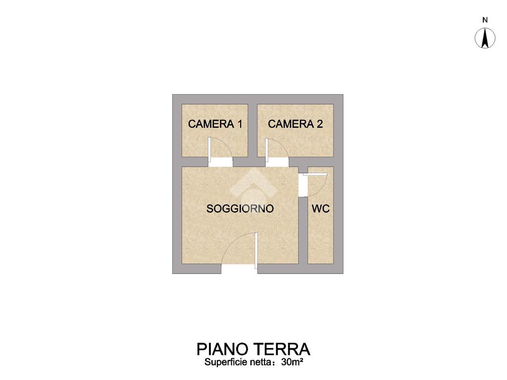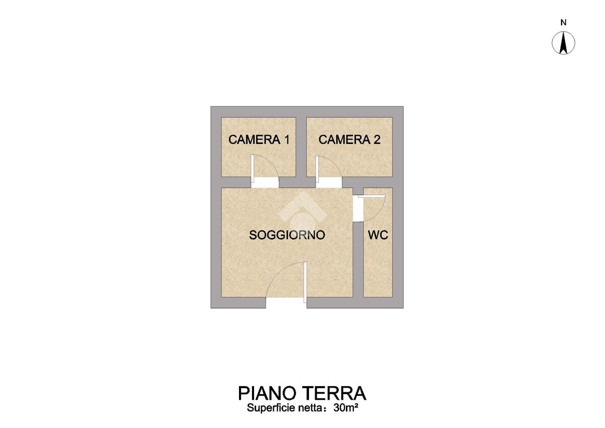 Al piano terra, l’immobile accoglie con un soggiorno funzionale, due camere da letto e un bagno, spazi comodi e ben distribuiti.